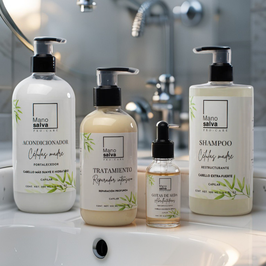 Fortaleza desde el lavado: el Shampoo Células Madre ayuda a reestructurar la fibra para que el cabello se sienta más resistente y menos quebradizo.